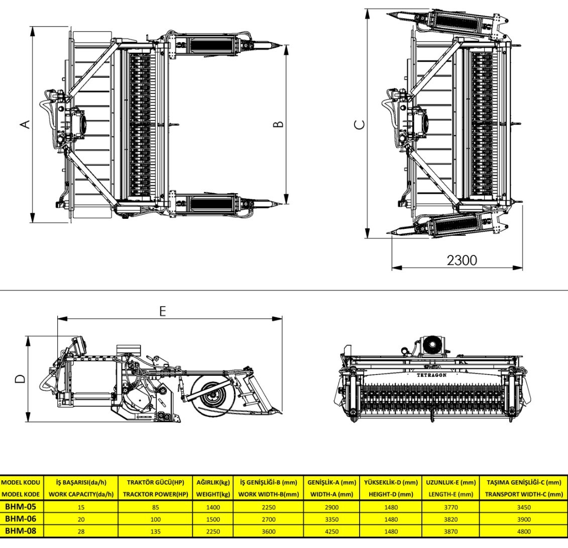 Makinelerimiz itmeli çalışmakta olup ve traktörün ön ve arkasına bağlanabilmektedir. Ayrıca biçerdöverlerle de çalışma imkanı mevcuttur.