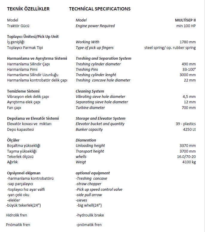META MULTİSEP 2 harmanlama makinesi ile kuru fasulye, nohut, bezelye, barbunya gibi baklagil ürünleri harmanlanabilmektedir. Ar-Ge faaliyetleri sonucu ortaya çıkan makinemiz ürünlerinizi en hassas şekilde işlemekte olup klasik harmanlama makinelerine göre oldukça verimli bir harmanlama işlemi gerçekleşmektedir.